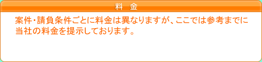 あくまで目安ですので、案件内容や条件によって料金は異なります。 詳しくはお問い合わせください。